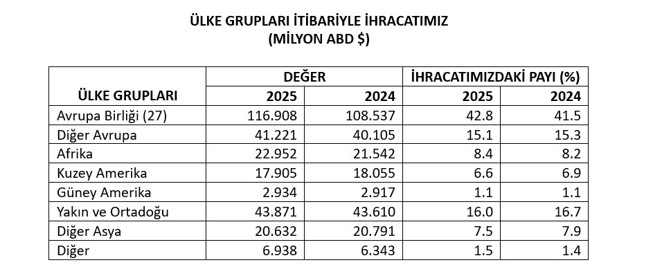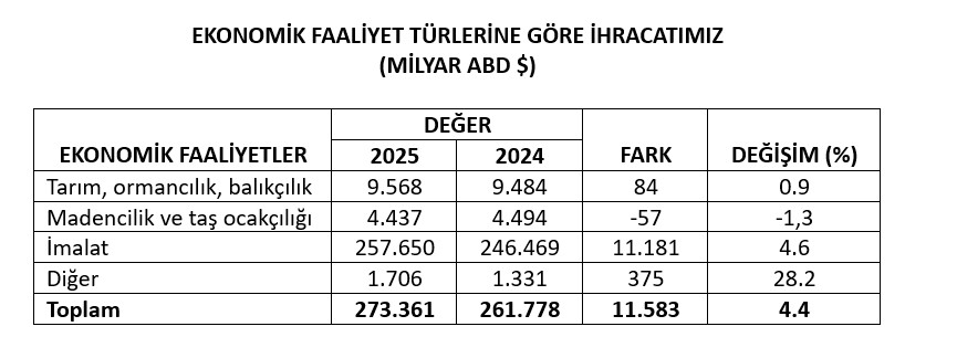 Bu nedenle ihracat sonuçlarının ekonomimiz için hayati önem taşıdığını söylemek hiç de abartı sayılmamalıdır. Ekonomimiz için bu kadar önem arz eden ihracatımız 2025 yılında nasıl bir seyir izlemiş bakalım: